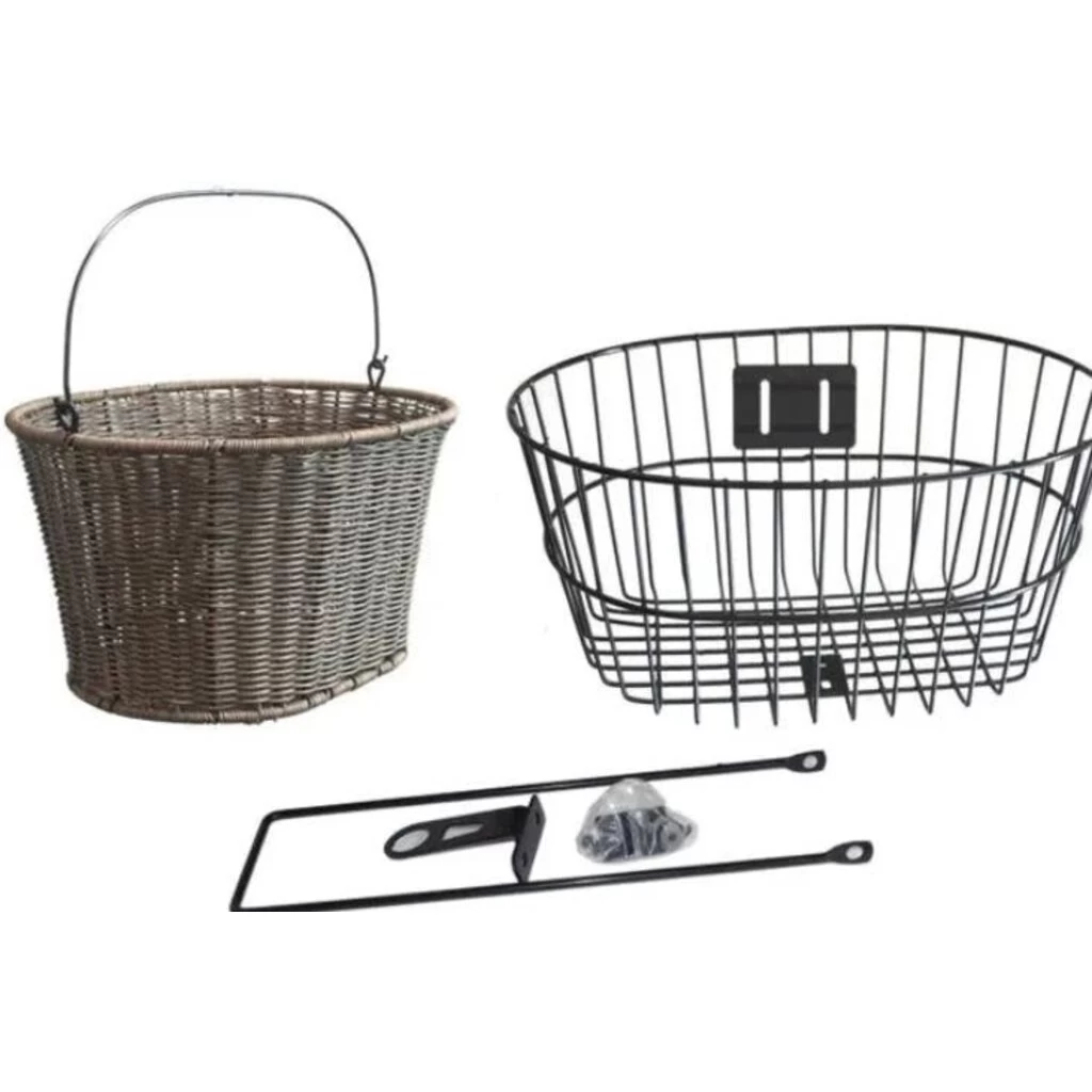 Black Metal Basket With Removable Poly Rattan Basket With Handles (Incl. Fixing Bracket For Quill Stem) 38 X 23 X 29cm