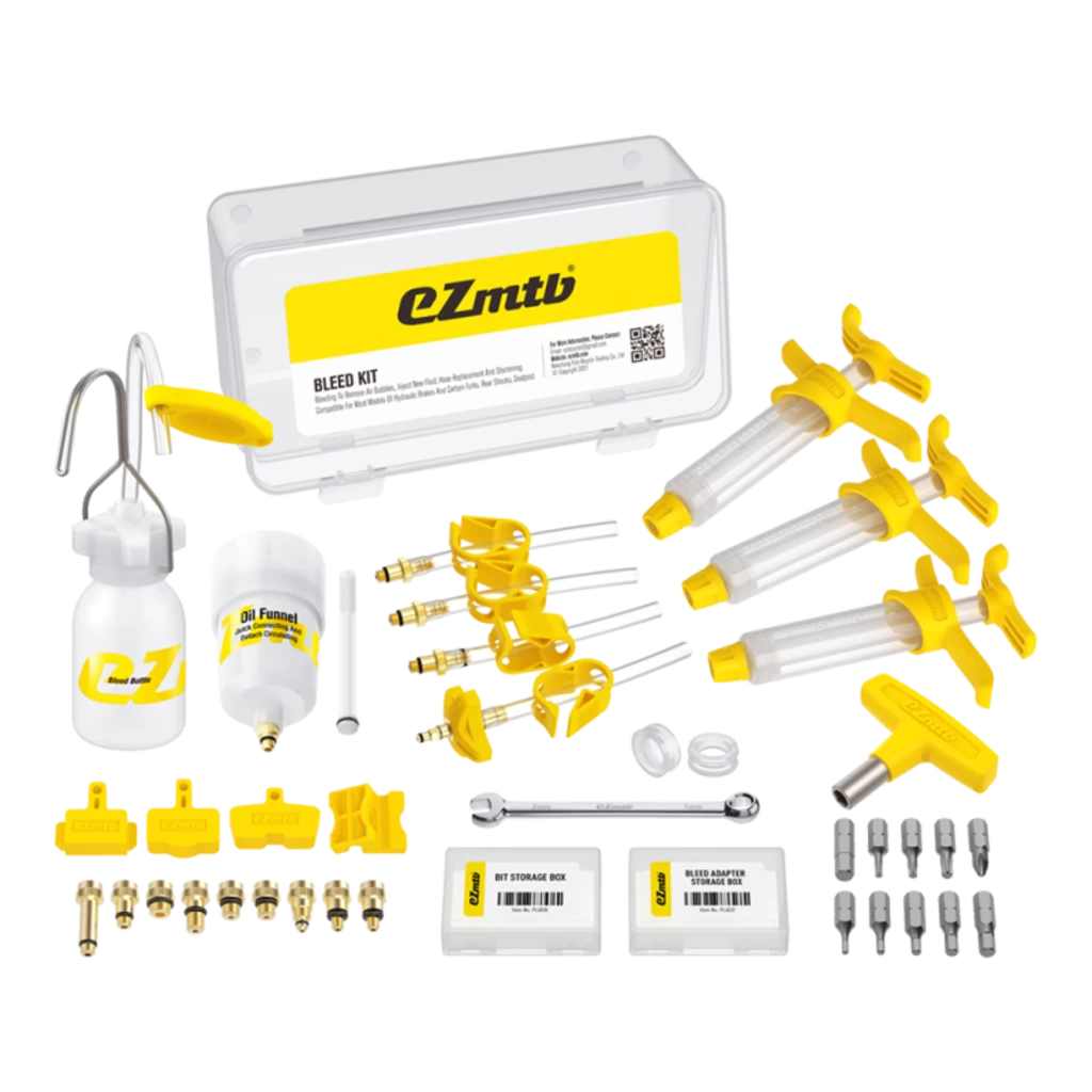 - Assortment of Adaptors and Storage box (M4, M5 Short, M5 Long, M5 Male Main, M6 Short, M6 Long, M6 SRAM, M6 Magura, M7)