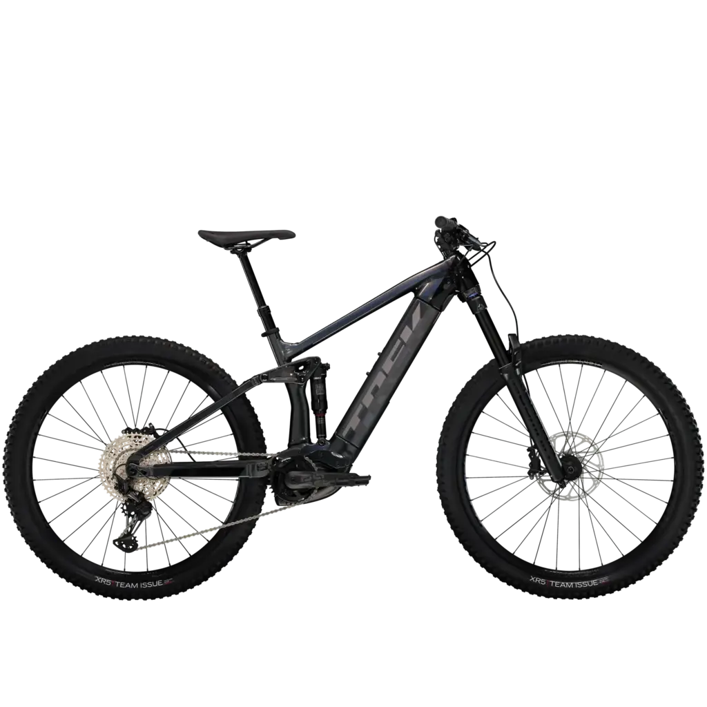 A burly alloy frame with 150 mm of rear travel and a 625 Wh Removable Integrated Battery, a 160 mm RockShox Domain fork, the latest from Bosch with smart system Performance Line CX capable of speeds up to 20 mph (25 km/h in Europe), including a Bluetooth® LED remote for easy connectivity and activity tracking through the eBike Flow app. A smooth-shifting 1×12 Shimano SLX/XT drivetrain, dropper post, powerful Shimano 4-piston brakes for confident descents and Bontrager Line Comp 30 29er wheels that are already completely tubeless-ready, including sealant.