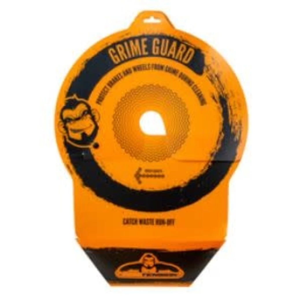The Grime Guard is an innovative new product and the only one of its kind. Its simple yet effective design protects your disk brakes and wheel rims while you clean and lubricate your drive train. Allowing you to make easy work of this, usually, quite a tricky task. The Grime Guard has a handy tray that catches all the dirty oil and cleaner, it protects flooring, paving, carpet, and the health of your grass!